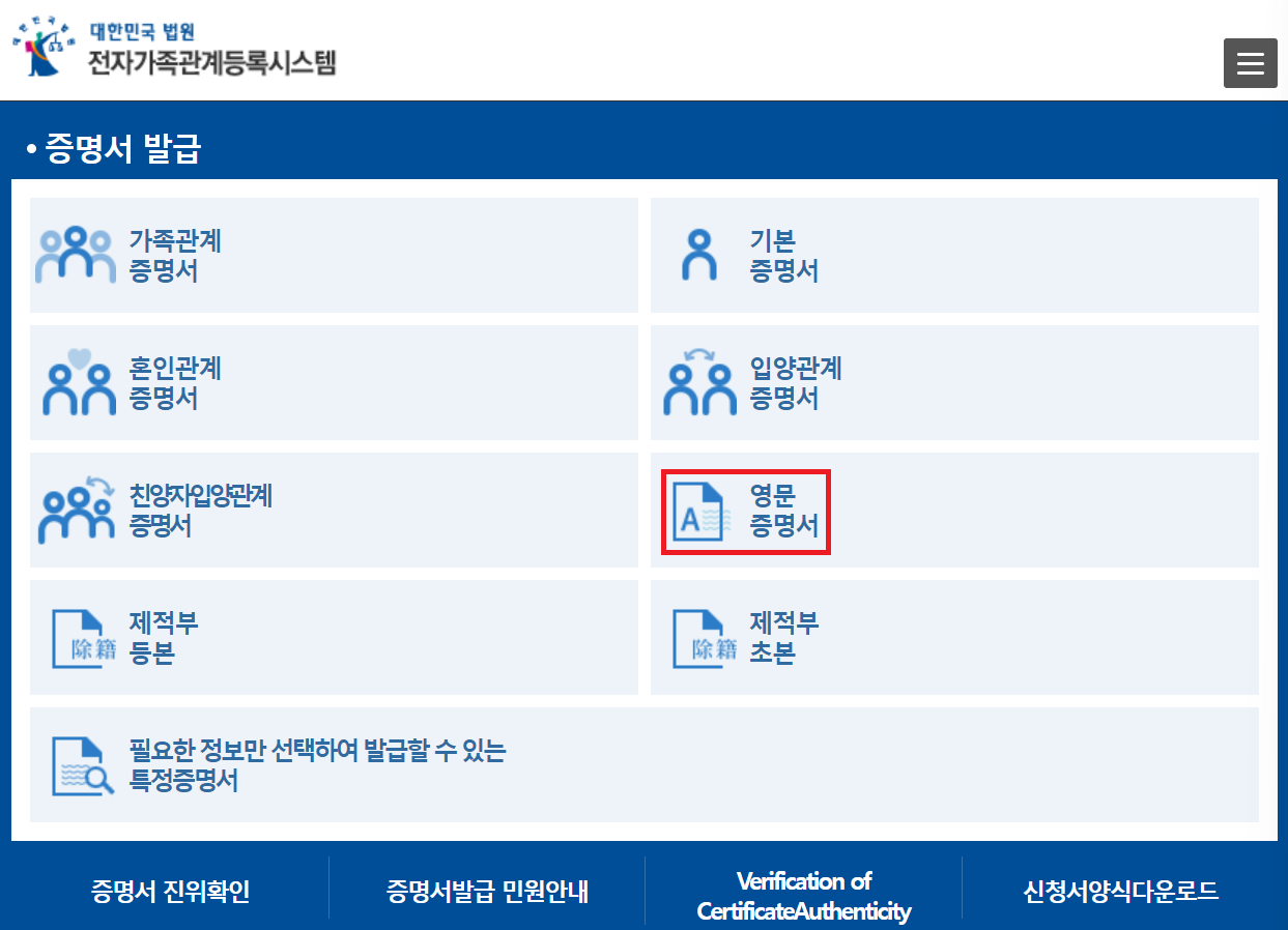 영문 가족관계증명서 발급방법