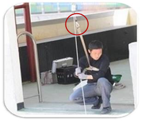 두 팔을 위로 올리면 밸트가 빠져 추락의 위험이 있으니 팔은 절대 위로 올리지 말아야 합니다.