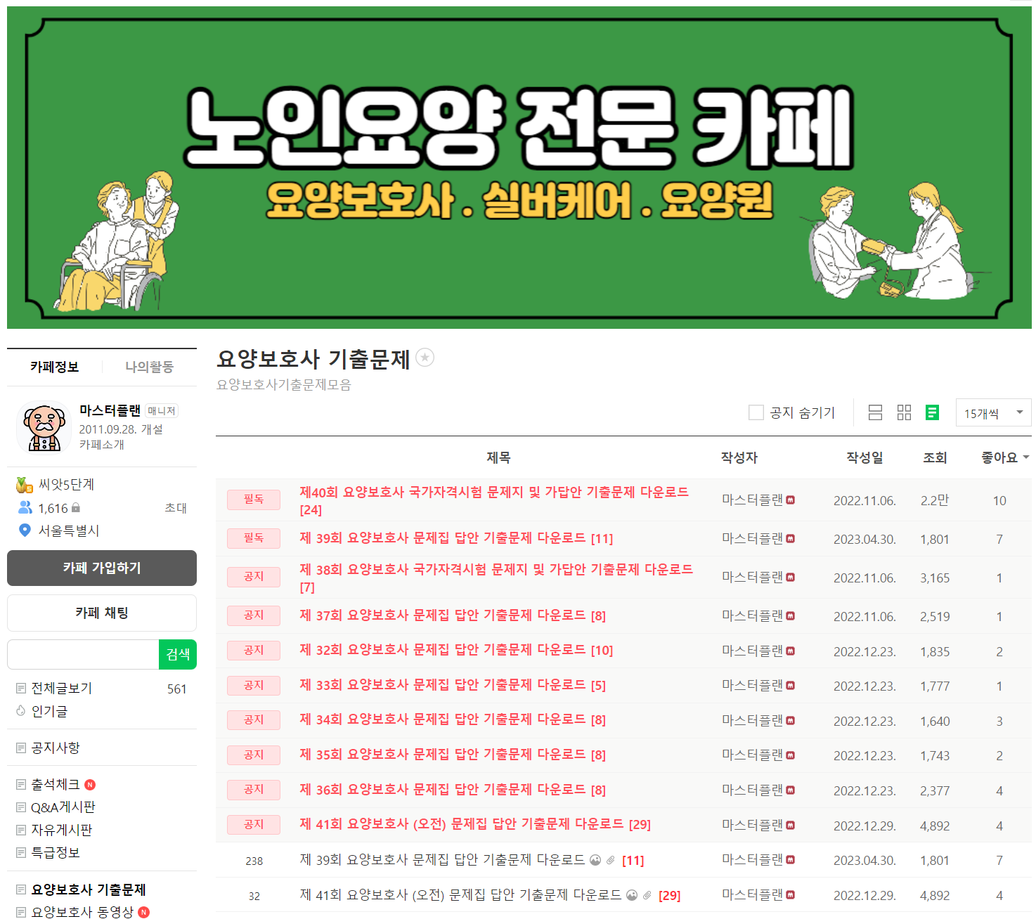 '노인요양마스터' 네이버 카페에 가입하면 기출문제를 다운로드 받을 수 있습니다.