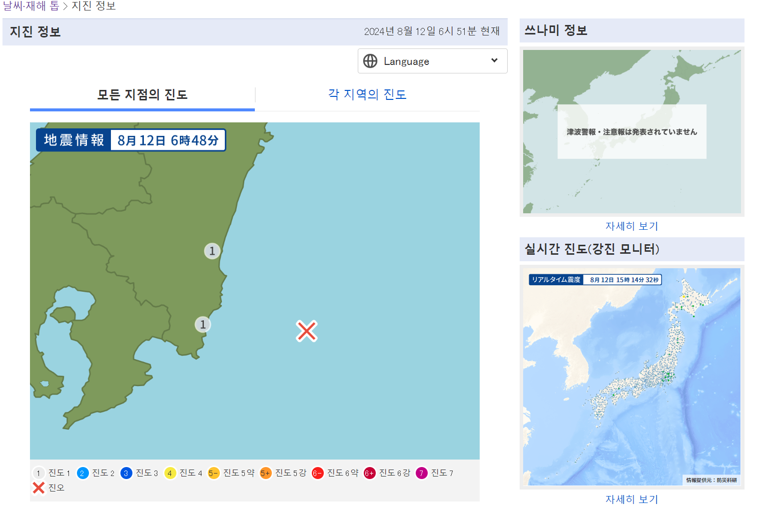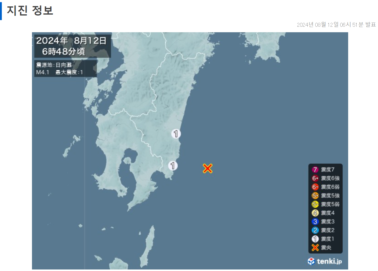 일본 여행을 가기 전에는 지진이 자주 일어나는 나라이기 때문에 미리 지진 지도를 확인하시는 게 좋습니다.