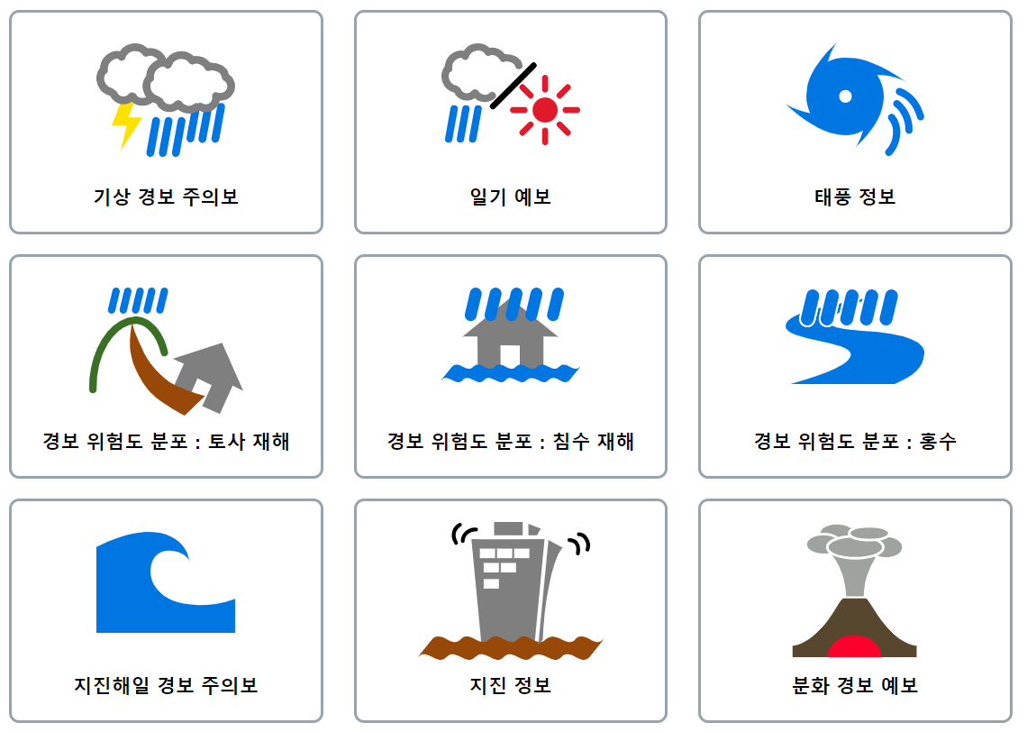 다양한 일기 예보와 재난 정보를 확인할 수 있습니다. 지진 정보 메뉴를 클릭합니다.