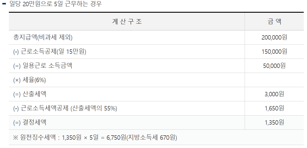 일용직 소득세 계산방법