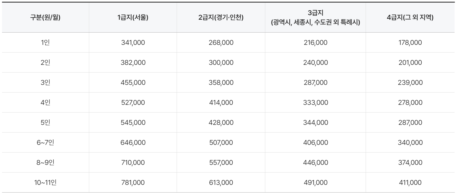 기준 임대료는 최저주거기준을 고려하여 지역별 및 가구원수별로 산정한 임대료로 최대 지급 가능한 임차급여 수준을 말합니다.