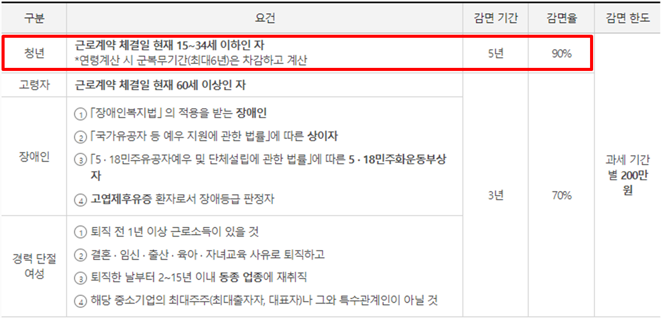 중소기업 청년소득세 감면 대상자