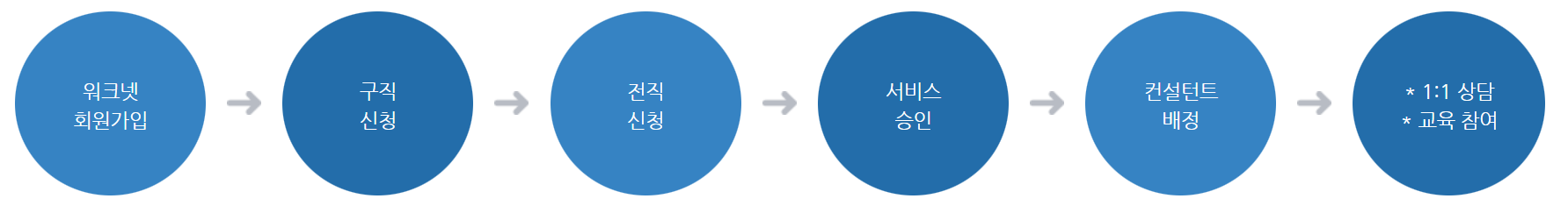 워크넷 회원가입>구직신청>전직신청>서비스승인>컨설턴트 배정>교육참여 순서대로 서비스가 이뤄집니다. 먼저 아래 사이트에 접속하여 서비스 신청을 할 수 있습니다.