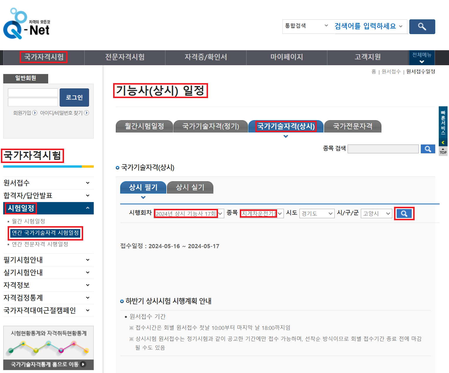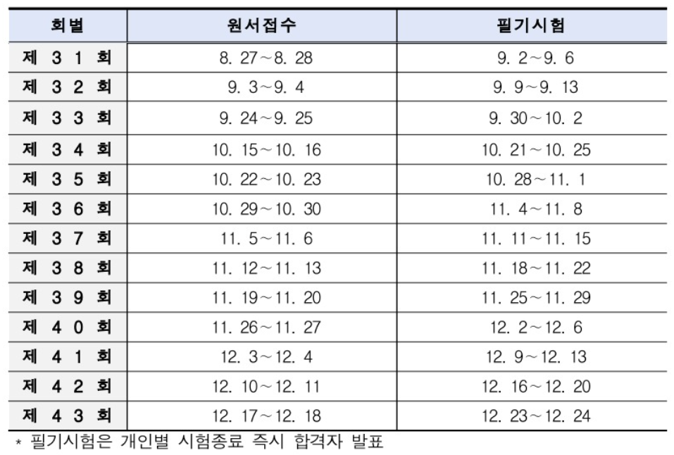 2024년 상시 필기시험 시행일정