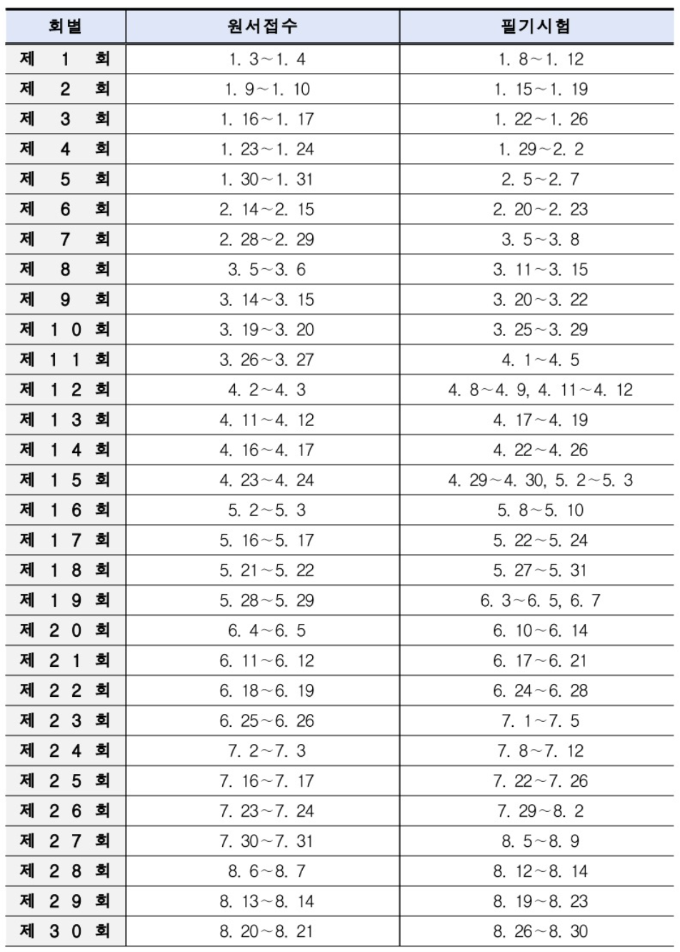 2024년 상시 실기시험 시행일정
