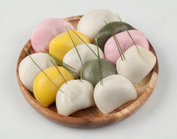 10. 기본 송편 모양에 꽃으로 장식을 합니다. 이쑤시개 꼬치로 안쪽을 살짝 눌러 꽃모양을 냅니다.
