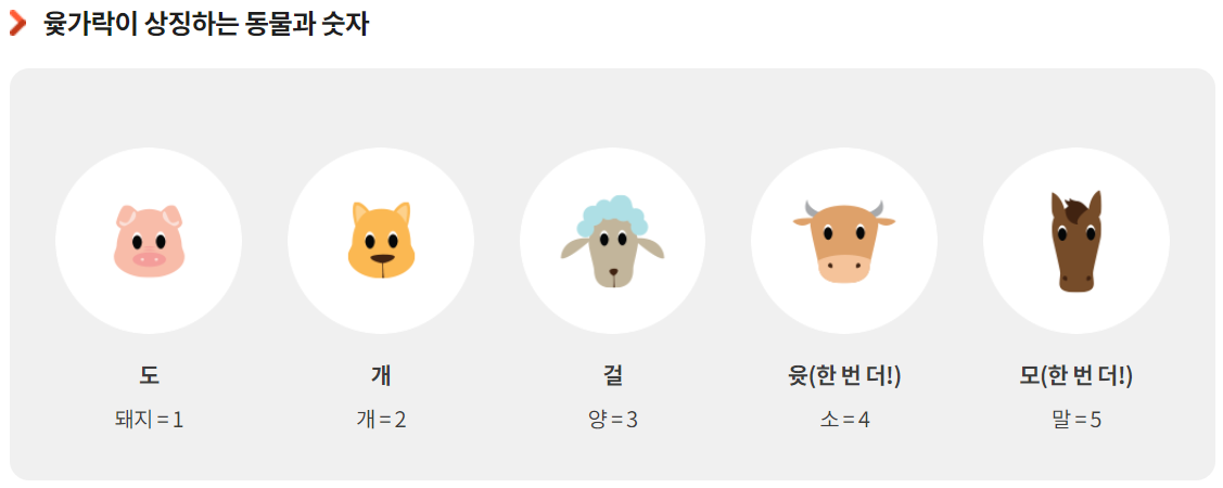 네개의 윷가락을 던지고 그 결과에 따라 말을 사용하여 승부를 겨루는 민속놀이입니다.