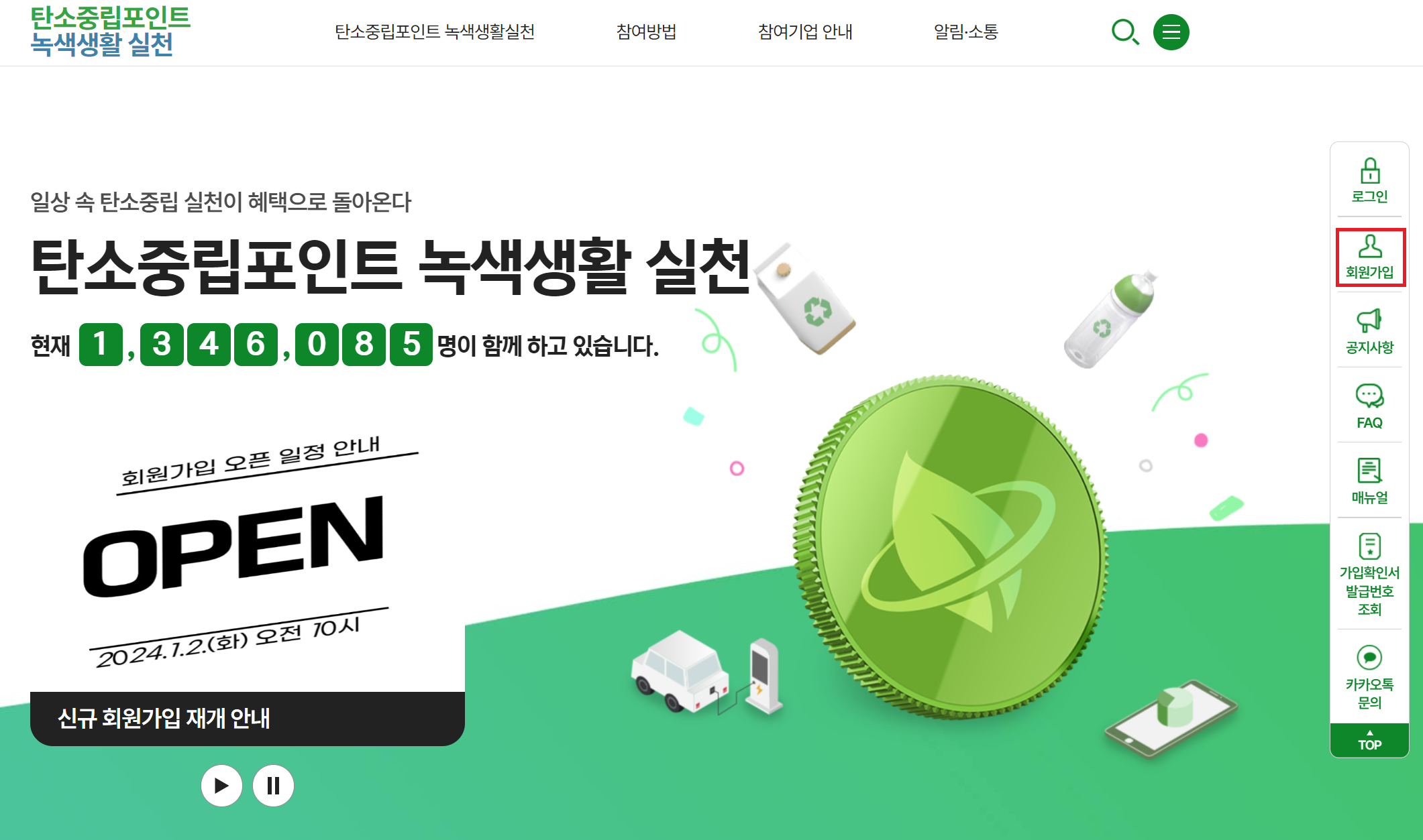 탄소중립실천포인트 홈페이지 가입방법
