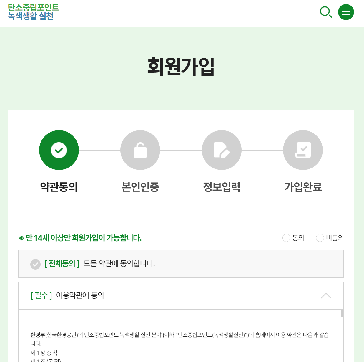 - 탄소중립포인트 녹색생활 홈페이지 접속하여 회원가입
