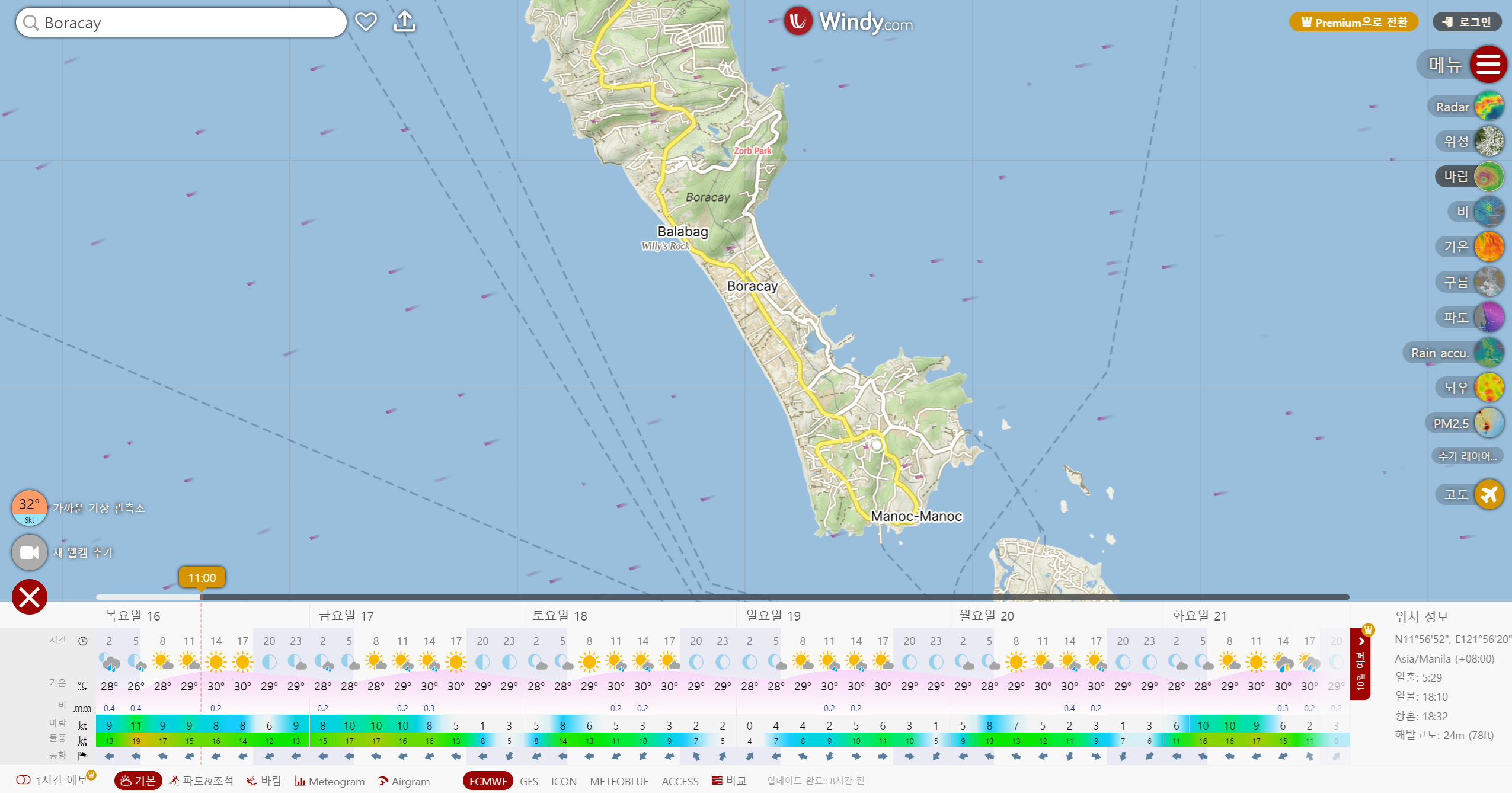 네이버, 다음 날씨보다 현지 기상청으로 확인하는 것이 좋은데요. 필리핀기상청과 윈디 사이트에서 날씨를 확인할 수 있습니다.