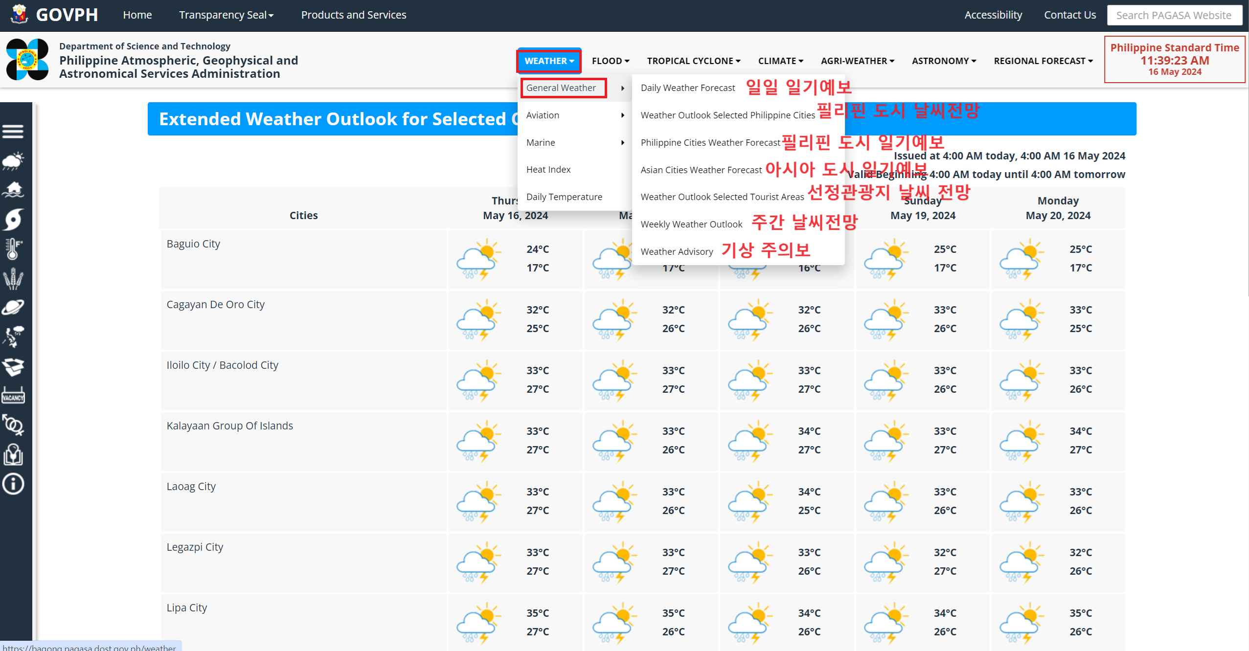 필리핀 기상청 PAGASA에서 일기예보 확인하기