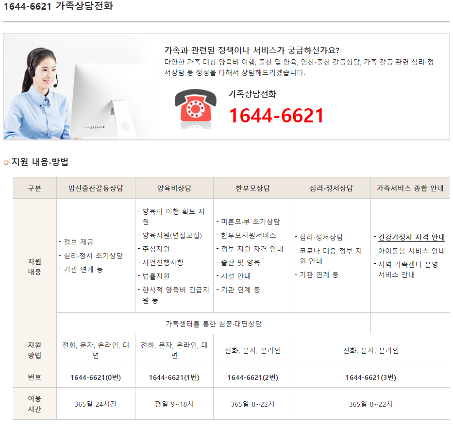 한부모라 지원서비스에 대한 내용을 더 알고 싶으시다면, 가족상담전화 : 1644-6621 에서 상담해보시고 자격조건이 맞다면 지원 혜택을 받아가시길 바랍니다.