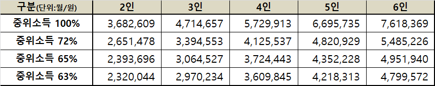 ● 청소년한부모가족 : 기준 중위소득 72% 이하에 해당