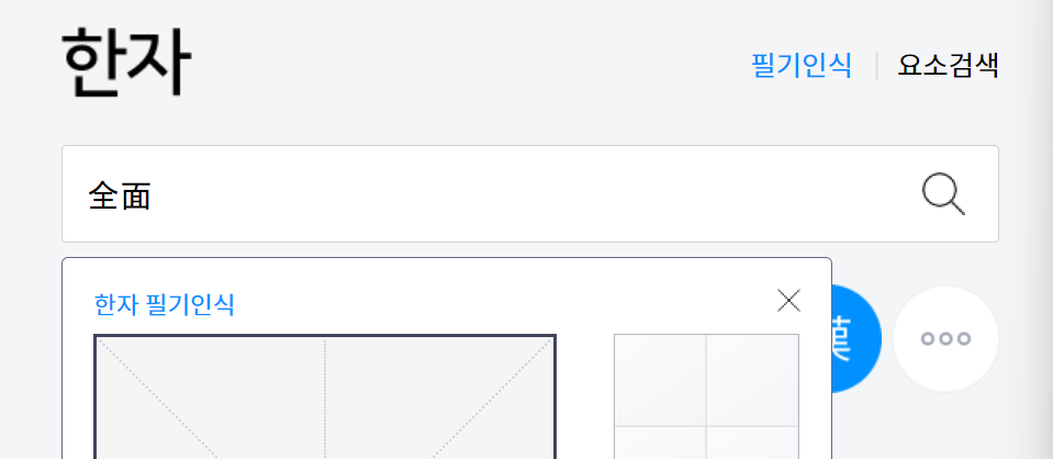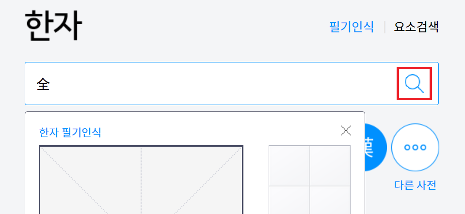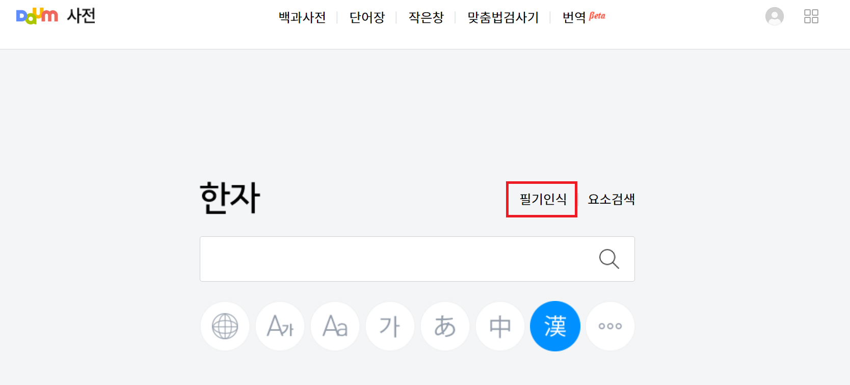 한자 사전에 접속하여 중간에 [ 필기인식 ]을 클릭합니다.