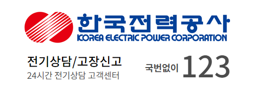 한전, 한국전력공사의 전화번호는 국번없이 123 번(유료) 입니다.