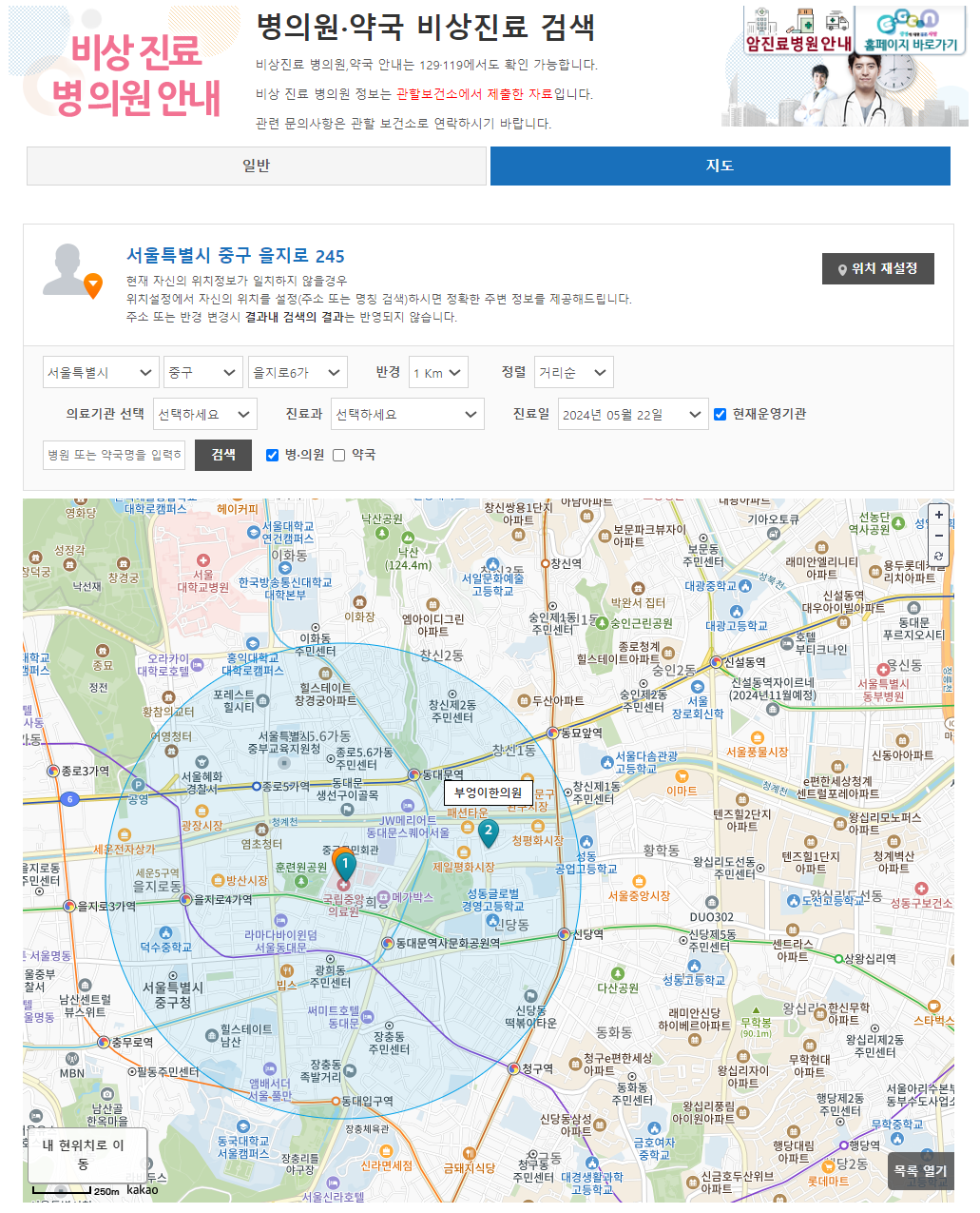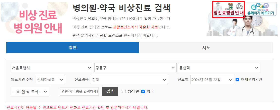 비상진료보는 병의원, 약국 찾기