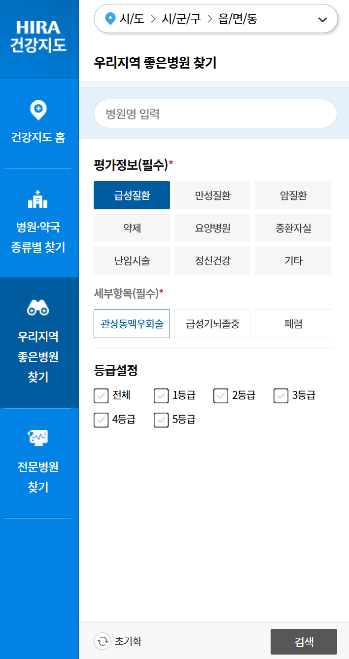 건강보 험심사평가원에서 제공하는 병원찾기를 이용하면 병원이나 약국을 종류별로 찾을 수 있습니다.