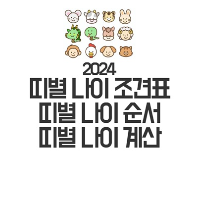 2024년 갑진년(甲辰年)은 '푸른 용의 해'로 푸른색의 '갑'과 용을 의미하는 '진'이 만나 청룡의 해를 의미합니다. 우리나라는 나이를 따질 때 출생연도에 따라 12간지를 따져보고 무슨 띠인지 확인합니다. 이번 시간에는 띠별 나이 조견표와 띠별 나이 계산 그리고 순서는 어떤지 알아보겠습니다.