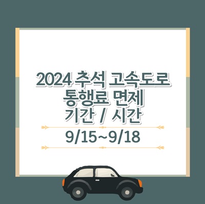 고속도로 통행료 면제 기간은 2024년 9월 15일 일요일부터 9월 18일 수요일까지 적용됩니다.