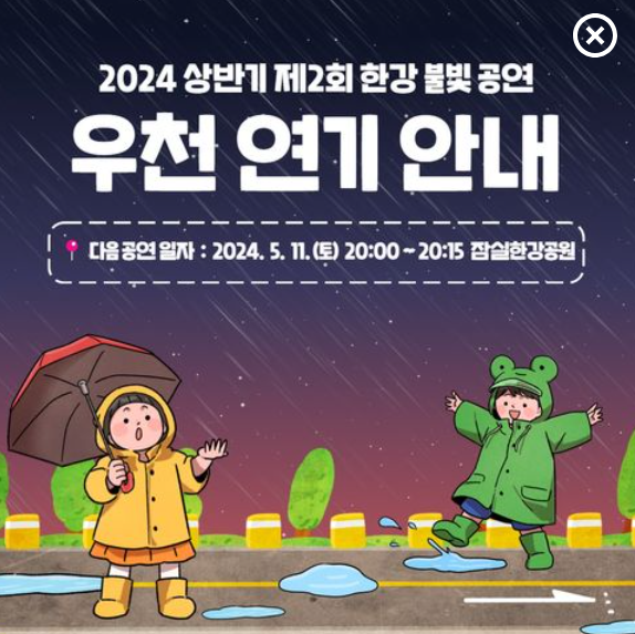 5월 6일에 예정 되어있던 제2회 한강 불빛공연이 우천 예보로 인해 연기되었습니다.
