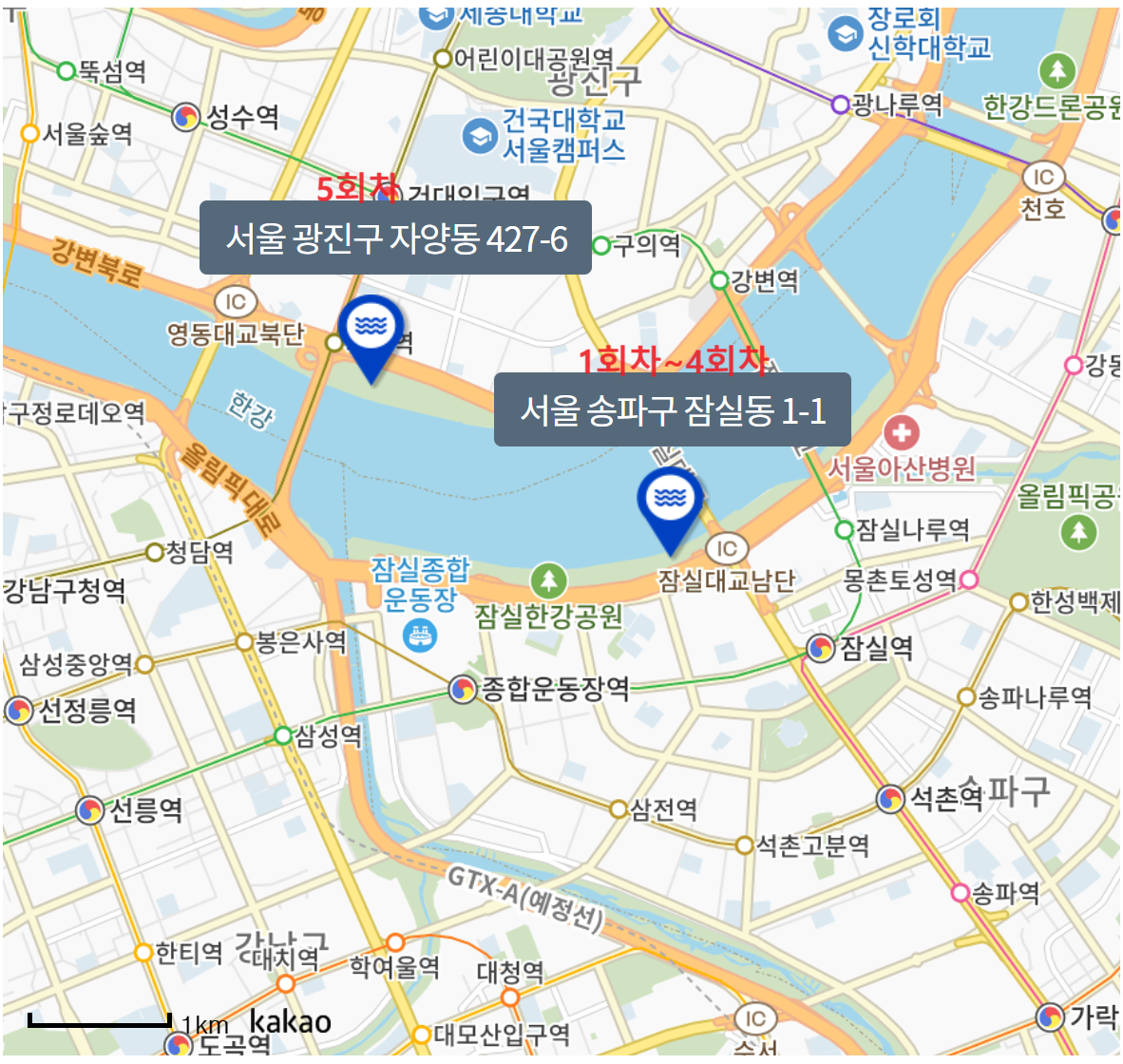 ▲잠실한강공원 (잠실대교~잠실나들목 사이, 1회차~4회차)