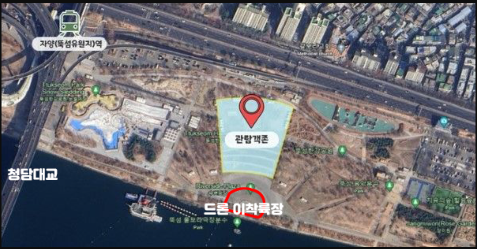 상공에서 공연이 펼쳐지므로 한강공원 인근이라면 어디서나 무료로 관람할 수 있습니다.