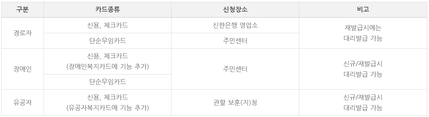 지하철과 경전철에서만 이용이 가능합니다. 카 드를 신청할 때 추가서류나 장애인복지카 드 등이 필요한 경우가 있으므로 미리 확인해야 합니다.