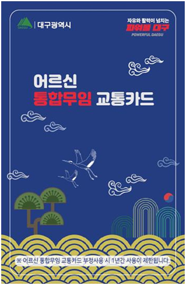 시내버스 그리고 도시철도를 무료로 이용할 수 있고 대구 뿐 아니라 경산, 영천 시내버스도 가능합니다.