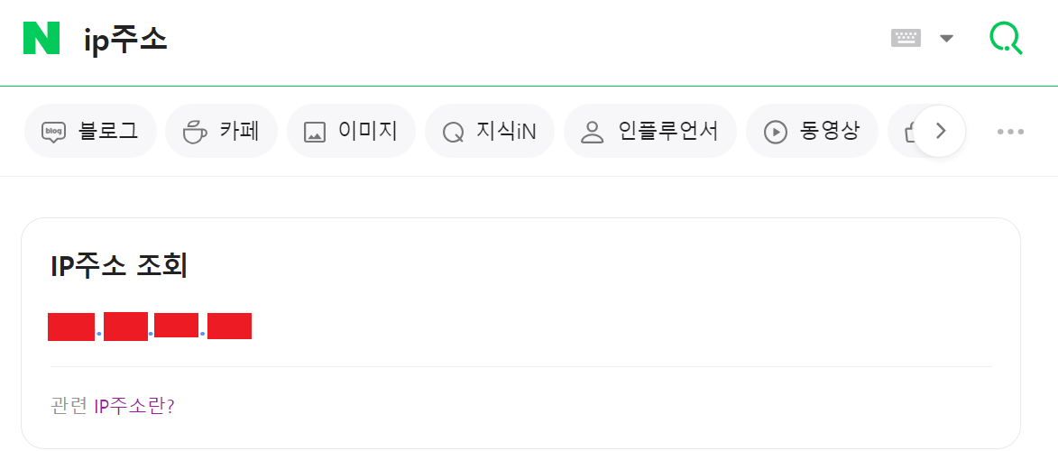 다음, 네이버 등의 포털 사이트에 접속해 검색란에 <ip주소> 또는 <내 아이피 주소>라고 기입해 키보드의 엔터버튼을 누르면 끝입니다.