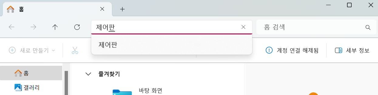 컴퓨터의 폴더를 열어 <제어판>을 검색하면 제어판이 나옵니다.